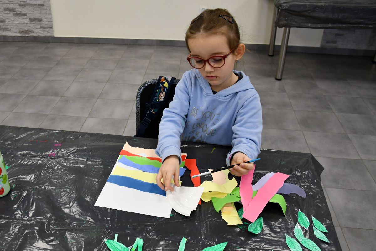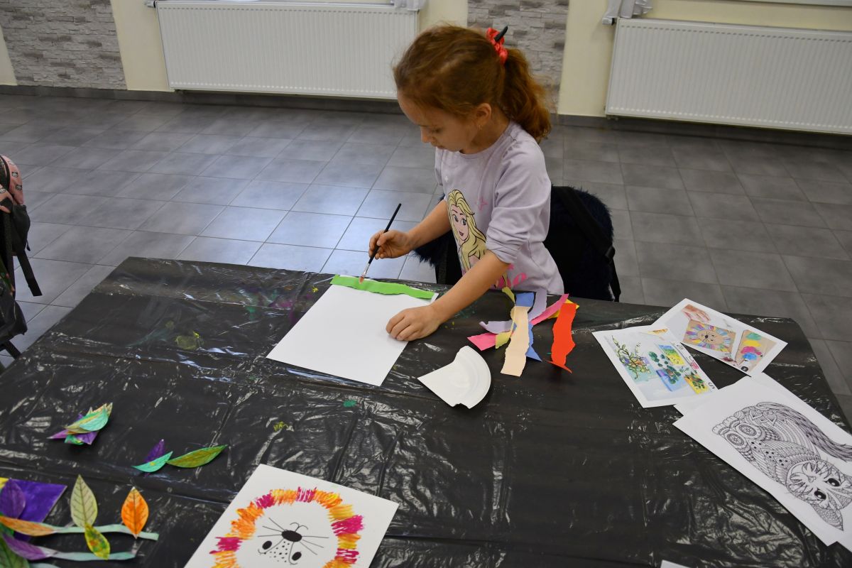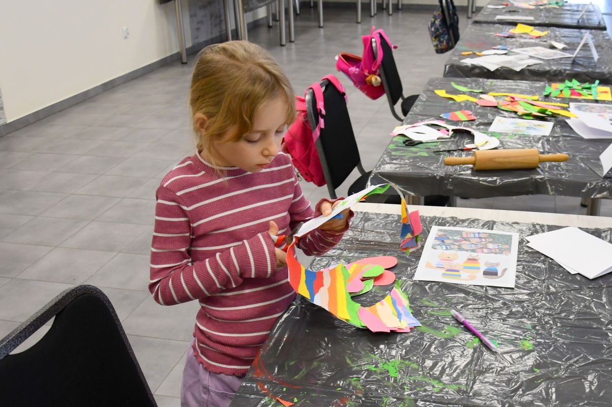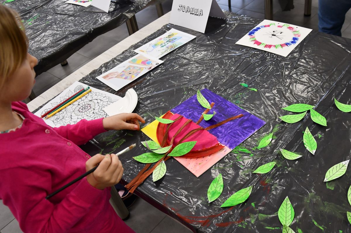 Podczas pierwszego dnia warsztatów zimowych małe artyski wykonały nietypowe kompozycje na płótnie. Malować można na rozmaite sposoby, najczęściej robi to się za pomocą pędzla, a w Gminnym Ośrodku Kultury na zajęciach poznajemy różne techniki - sztuka tworzona widelcem, oto w taki sposób powstał lew z kolorową grzywą.