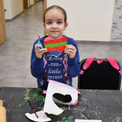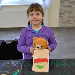 Wiodącym tematem dzisiejszych zajęć był kotek w sweterku, wykonany głównie z tektury i wełny. Dziewczynki wykonały również serduszko – wydzierankę. Prosta w wykonaniu, a jednocześnie niezwykle efektowna… ze szczególną dedykacją.