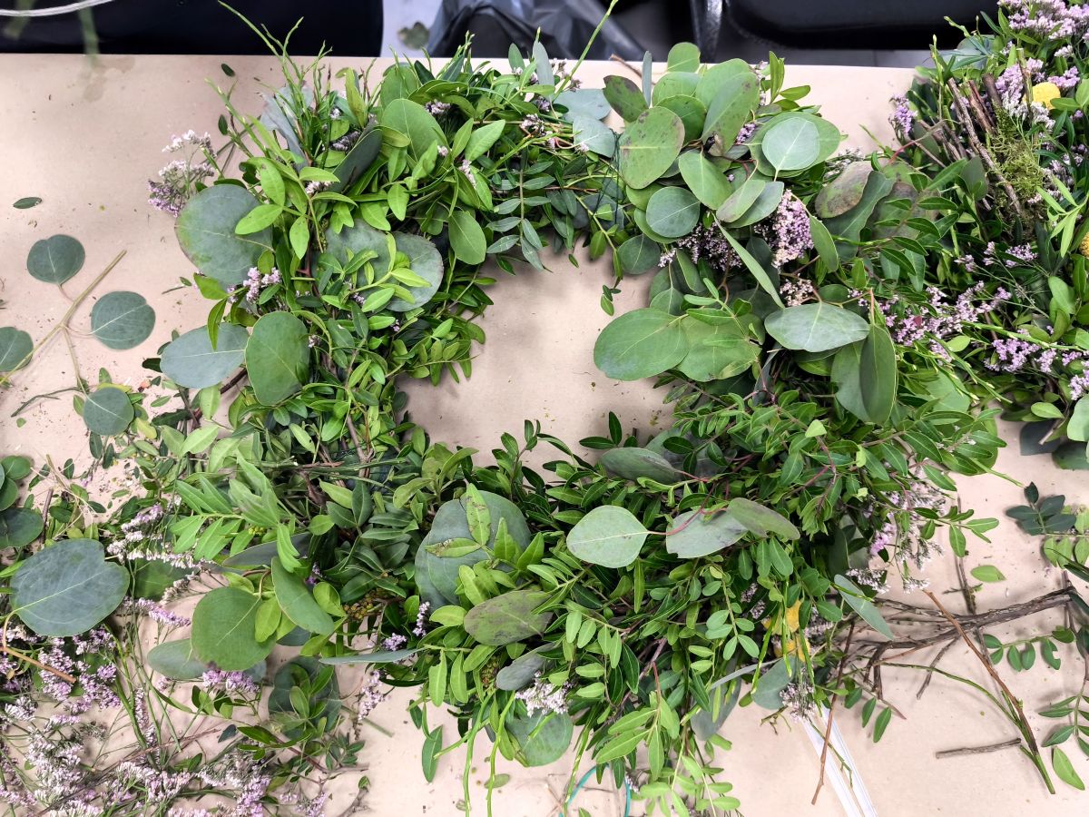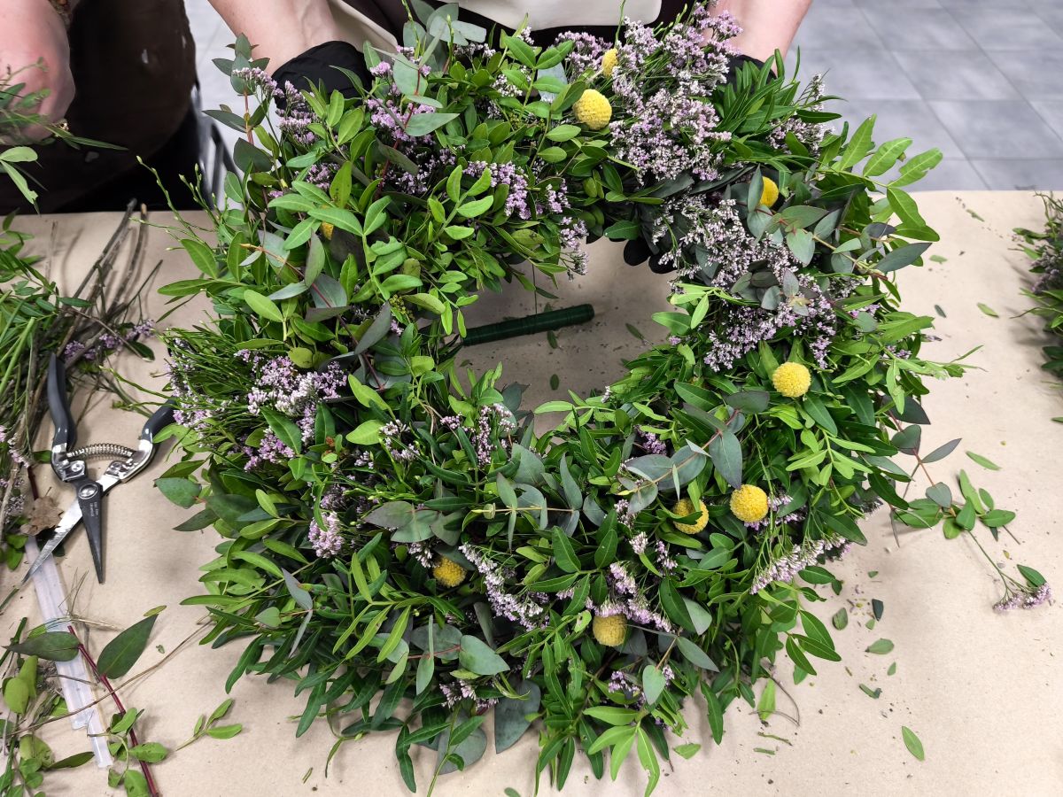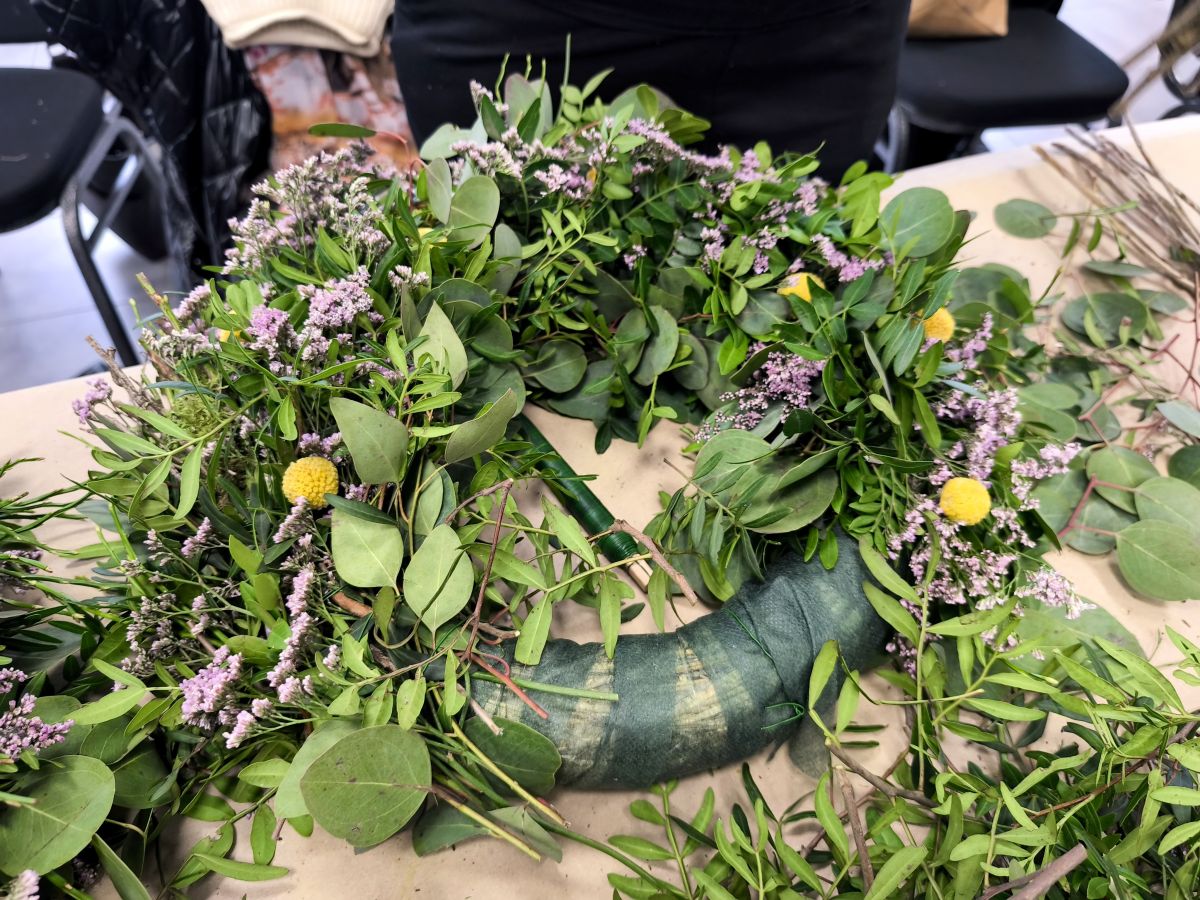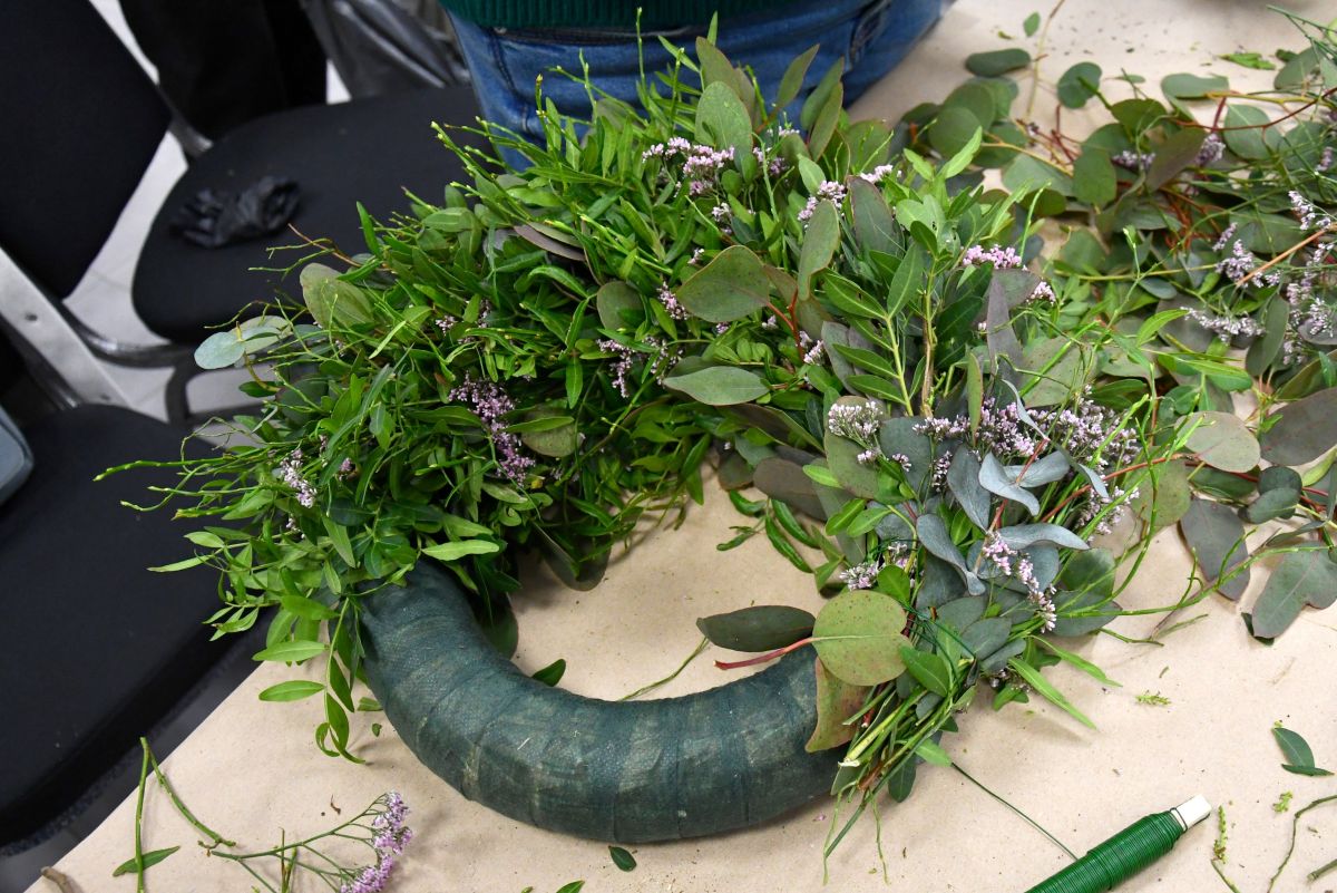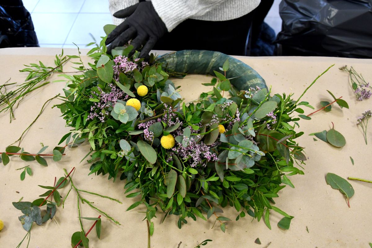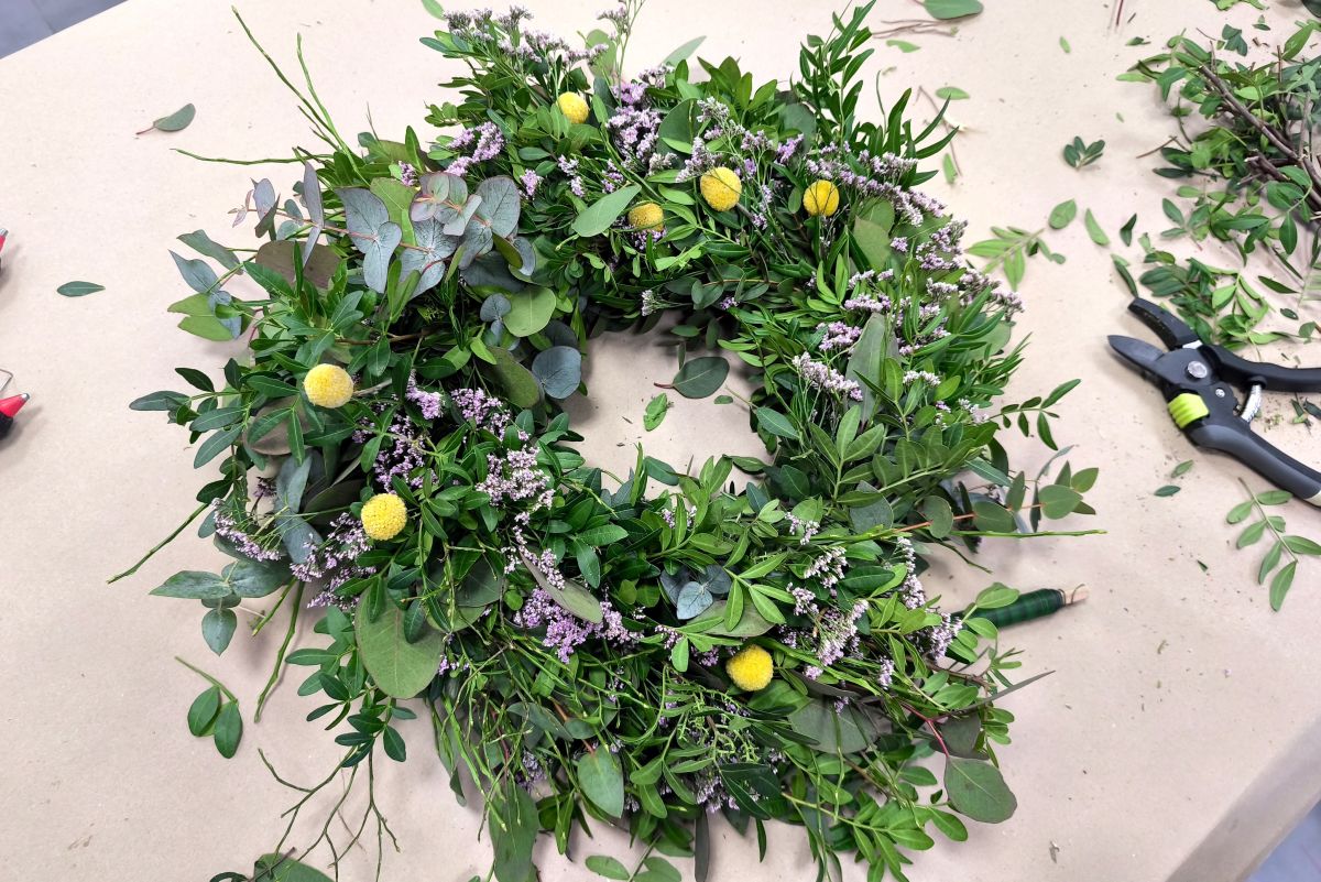 Zajęcia poprowadziła Pani Beata z Pracowni Florystycznej Centrum Ogrodniczego „Zielony Zakręt”, dzieląc się swoją wiedzą, doświadczeniem oraz pasją do florystyki. Uczestniczki miały okazję samodzielnie wykonać efektowne wianki, wykorzystując takie materiały jak eukaliptus, limonium, kraspedia, pistacja oraz gałązki borówki (Vaccinium myrtillus). Kompozycje zostały dodatkowo ozdobione elementami nawiązującymi do nadchodzących Świąt Wielkanocnych.