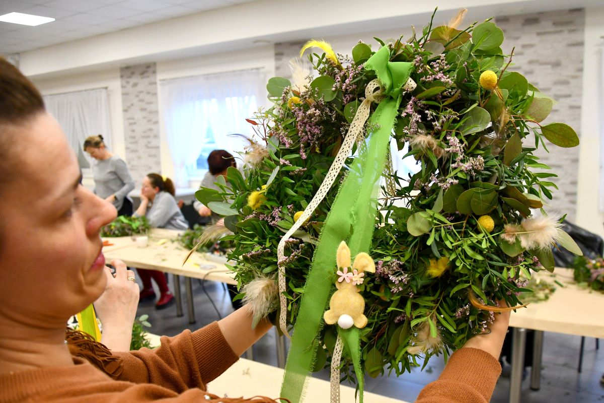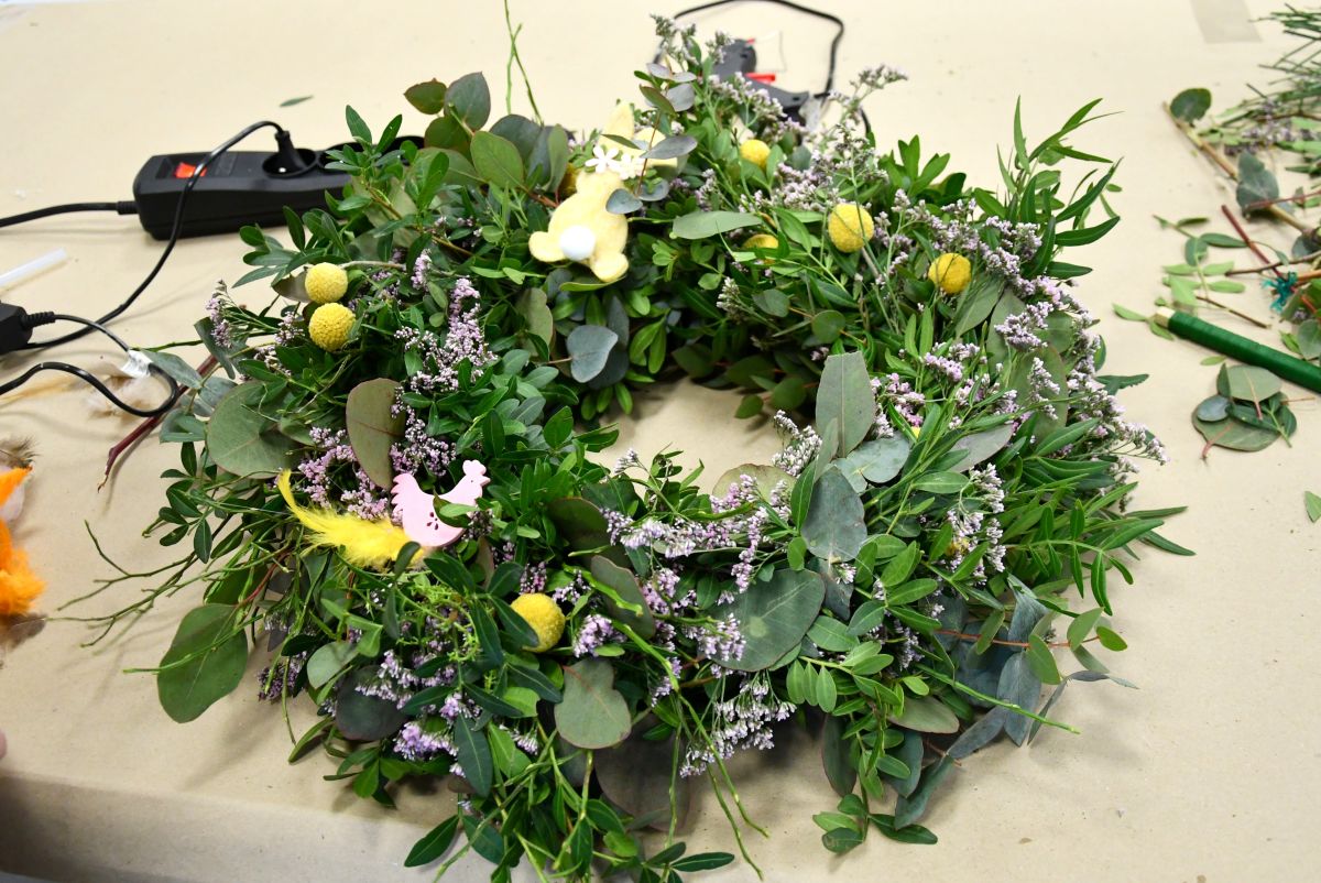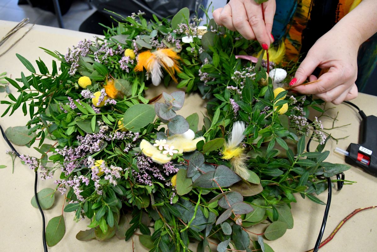 Warsztaty tworzenia wianków w klimacie nadchodzącej Wielkanocy.